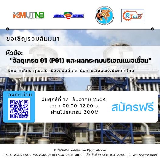 สัมมนาออนไลน์ เรื่อง “วัสดุเกรด 91 (P91) และผลกระทบบริเวณแนวเชื่อม”